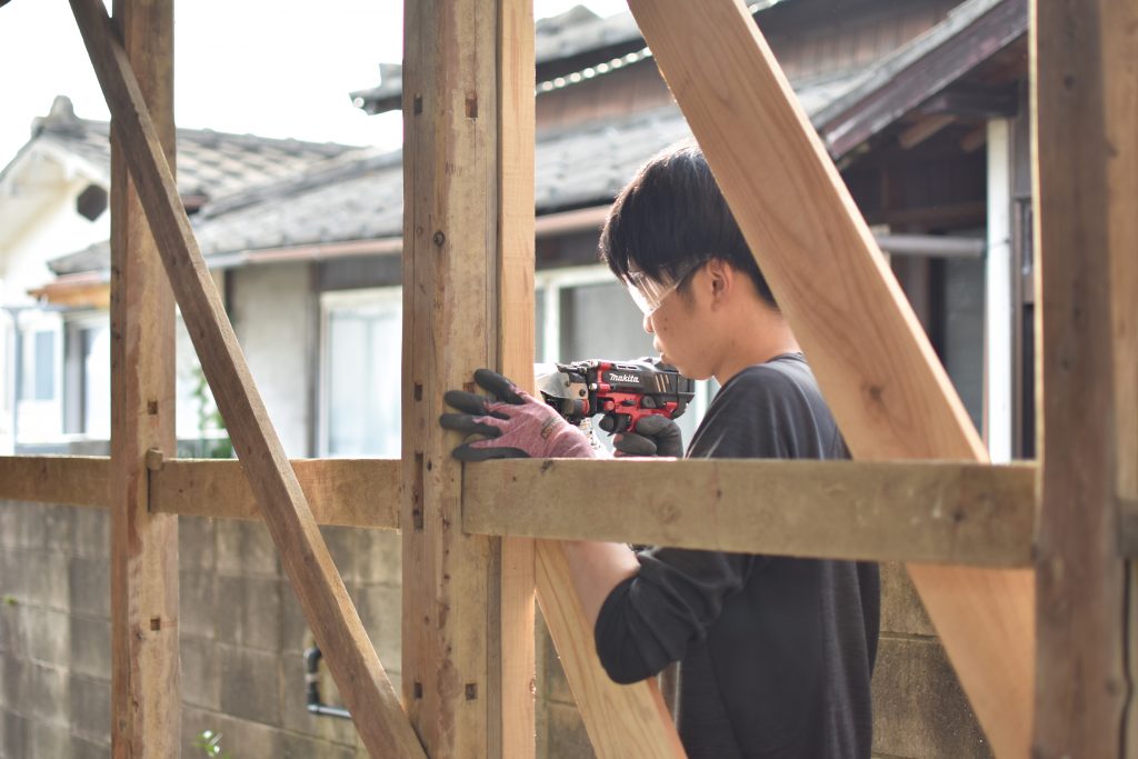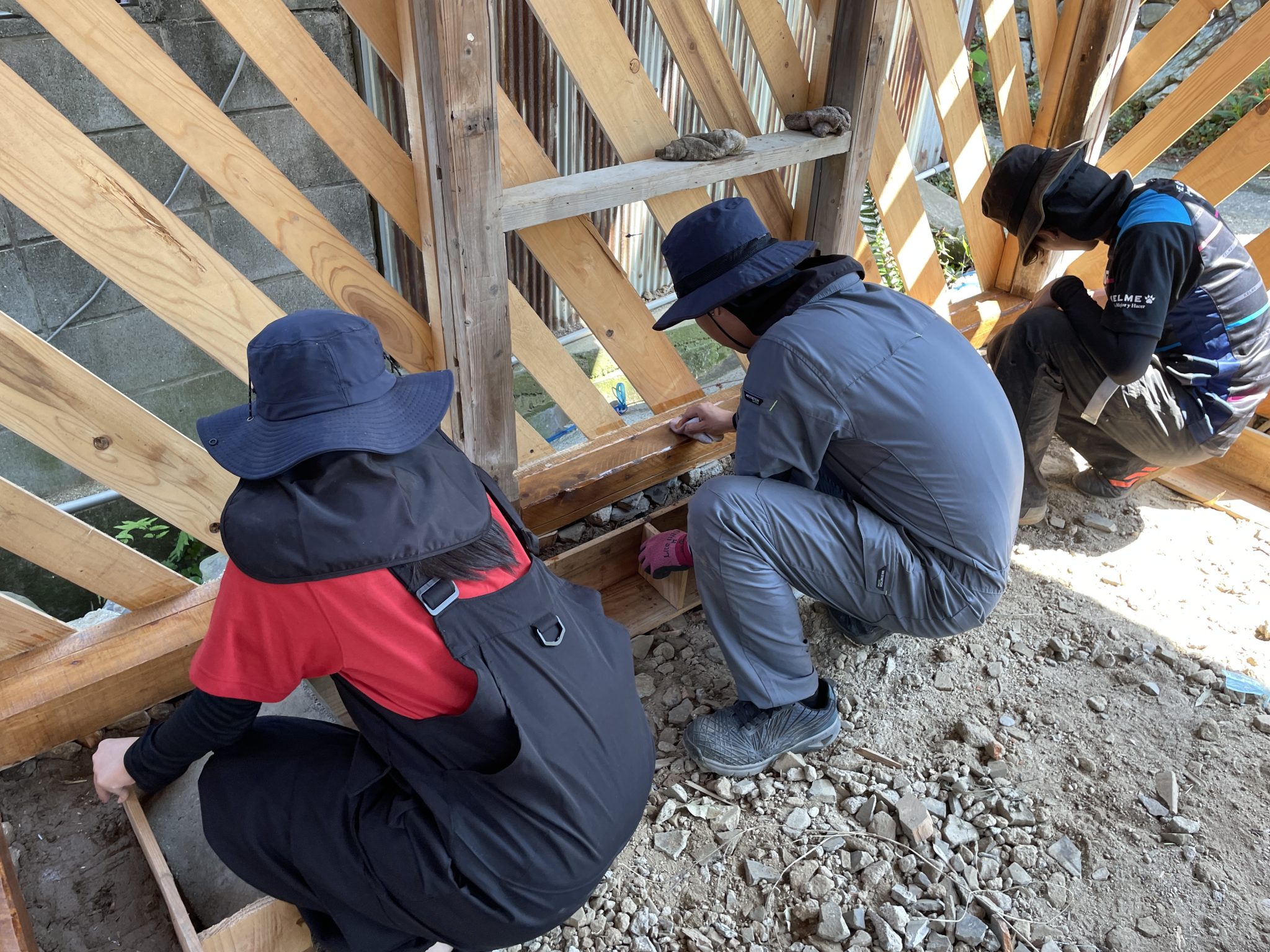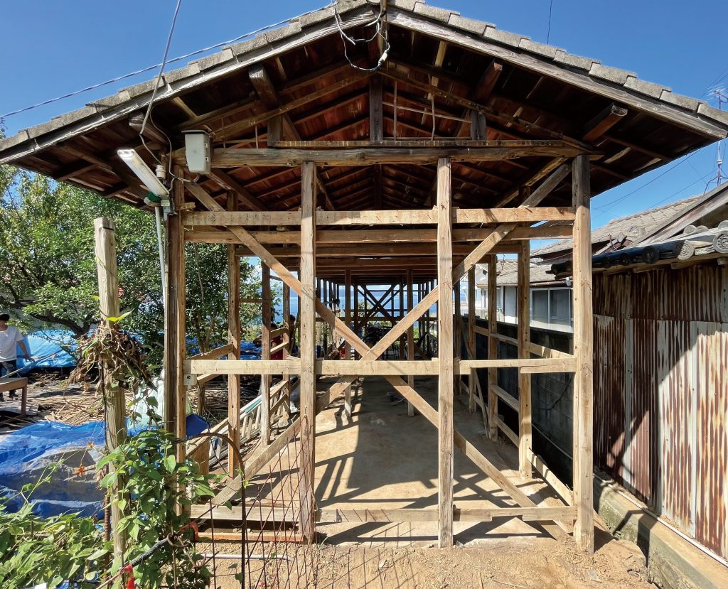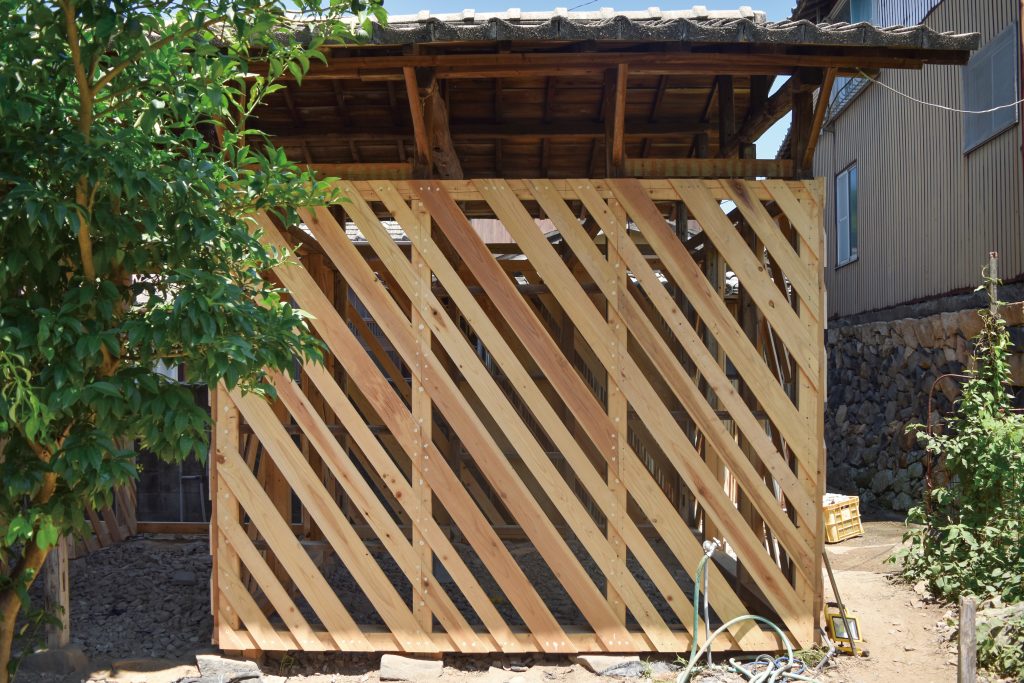 納屋における西側の3スパンを浴室とオンドル休憩室に改修予定である。男木島では浄化槽などの設置のハードルが高く、水回りが整備されていない家が多い。またガス給湯器を設置する場合は、島外からプロパンガスのボンベを運搬する必要がある。そこで島外のインフラへの依存を減らすためにも、島内資源や改修時に出る廃材・端材を燃料とする薪ボイラーを導入する。島民が実施できるような簡易な防水の工法を検討し、学生自ら施工する予定である。